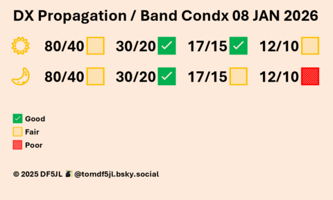 ZCZC 080615UT JAN26 QAM SFI135 SSN118 eSFI114 eSSN68 KIEL A7 K(3H3 SWS365 BZ-8 BT12 HPI59 DST2 KP4CAST(3D) MAX 4/5 5 4 MUF3000 MAX28+(D) MIN8(N) DATA BY SWPC/NOAA SANSA WDC/KYOTO MET OFFICE UK GFZ POTSDAM FWBST RHB NNNN