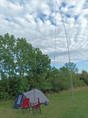 Die ersten Untersuchungenan der Antenne fielen allerdings ernüchternd aus, da das Stehwellenverhältnis der an einem Kunststoffausleger aus dem Fenster gehaltenen Antenne im benötigtne Bereich um die 145 MHz bei 1:2 und schlechter lag. Bei der häuslichen Nachmessung an einem Fieberglasmast in etwa 8m Höhe zeigte sich dann aber, dass unsere Anstrengungen beim Bau von Erfolg gekrönt waren. Ein erster Funkkontakt mit DH3NAN aus Lichtenfels mit 5 Watt in SSB mit 59+20dB ist OM Wolfgang, DJ4QV, im Anschluss an die Vermessung der Antenne auch schon gelungen.