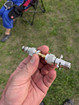 Wie es sich für einen Fieldday gehört wurde natürlich auch experimentiert. So testete OM Wolfgang, DJ4QV, die Energieversorgung für seinen 20W Kurzwellen Transceiver mittels batteriegepuffertem 60W Solarpanel, OM Tim, DO1TLP, testete eine 70cm Moxon Antenne von DL1DN und bewies seine kreativen Fähigkeiten in MacGyver Manier bei der Konstruktion eines Adapters von BNC Stecker auf N-Buchse. Manch einer nannte das Gebilde auch spöttisch einen 6dB-Abschwächer, aber was soll man sagen: am Ende hat es hat funktioniert!