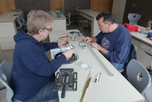 Am Nachmittag ging es dann ans praktische Tun. Jeder Teilnehmende bekam einen Morsetastenbausatz vom AATiS zur Verfügung und durfte nach einer kurzen Einführung zu den Bauteilen und einer Vorführung zur Herstellung einer guten Lötverbindung seine eigene Morsetaste herstellen und anschließend mit dem Partner erste Gebeversuche anhand einer Morsecodetabelle unternehmen.