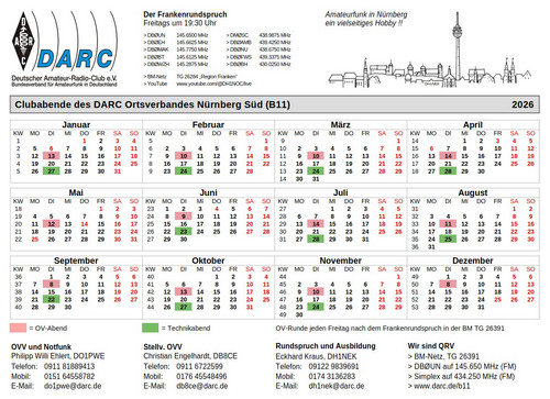 | Stellvertretender OVV | Christian Engelhardt, DB8CE | Telefon: 0911 6722599 Mobil: 0176 45548496 E-Mail: db8ce(at)darc.de |