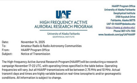 HAARP-Messkampage 17. - 22. November