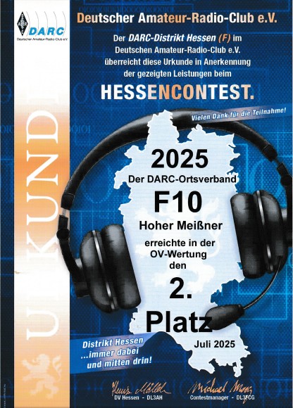 Leider konnten einige OV-Mitglieder in diesem Jahr nicht am Hessencontest teilnehmen. Trotz alledem erreichten wir einen sehr guten 2.Platz in der OV-Wertung. Vielen Dank an alle, die dieses Ergebnis ermöglichten.