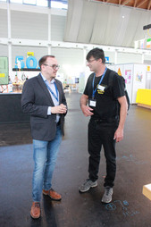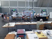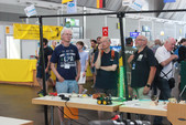 Neben dem Löten präsentierten wird die Jugendarbeitskonzepte aus dem Distrikt P und versuchten für die Jugendarbeit und Ausbildung zu werben. Werner, DG8WM, stellte die Projekte aus P07, Axel, DF9VI, die Projekte von P31, und Ute, DO1UTE, Bernd, DG1GHY ich die Projekte von P34 vor. Die großen LED-Objekte von P31, der Roboter von P34 und die Morsetaste von P34 zogen die Besucher einmal mehr in ihren Bann. Mit der Morsetaste konnte man die Besucher anlocken und Gespräche beginnen.