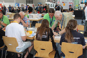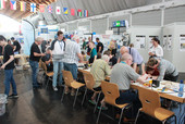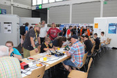 Wir hatten einen 77 qm großen Stand zwischen Aatis, den Kollegen von Funken-Lernen aus Baden und dem Notfunkstand des OV Friedrichshafen, P03. Unser Stand hatte drei Schwerpunkte: Basteln mit den Kindern, Information sowie Werbung für die Jugendarbeit und Platz für Gespräche in der Ruherecke bei gutem Kaffee,