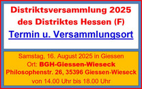 Natürlich steht der Termin unserer Distriktsversammlung auch schon fest. Es ist der 16. August 2025; dieses Jahr wieder mit Wahlen des Distriktsvorstandes.