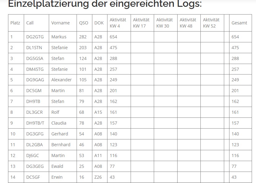 - Ihr müsst mindestens an 3 der 7 Tagen je Aktivitätswoche ein QSO geführt haben.