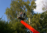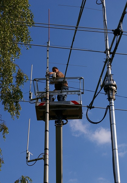 Er wollte sich dabei nicht nur einen Überblick von unserem OV-Gelände verschaffen, sondern es wurden Montagearbeiten am hinteren Antennenmast gemacht und etliche störende Birkenäste abgeschnitten.