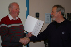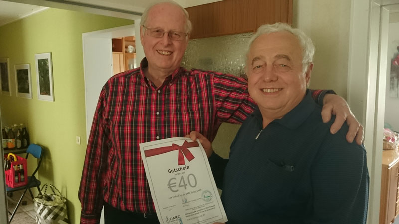 Beim OV-Abend am 29. April 2016 konnte unserem Edmund, DF5NC zu seiner 25 jährigen Mitgliedschaft beim DARC gratuliert werden. Unter dem Beifall der anwesenden OMs wurde ihm eine Urkunde und die zugehörige Anstecknadel überreicht. Wir wünschen Edmund weiterhin viel Spaß und Erfolg beim Funk-Hobby - zumal er nach eigener Aussage, zukünftig dafür mehr Zeit aufbringen kann.