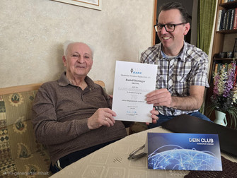 Sicher gibt inzwischen wenige OMs, die ein solches Jubiläum noch feiern können. Genau am 1.1.1956 - fünf Jahre nach der offiziellen Gründung des DARC (!)- trat "Rudi" DK5NM dem DARC e.V. bei. 70 Jahre für den Amateurfunk- das ist beeindruckend! Deine Arbeit im OV B06 Bayreuth hat Spuren hinterlassen und viele geprägt. Herausstellen möchte ich besonders die zahlreichen Fieldays mit dem ehem. OV X24 unserer Partnerstadt Rudolstadt nach der Wiedervereinigung.