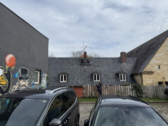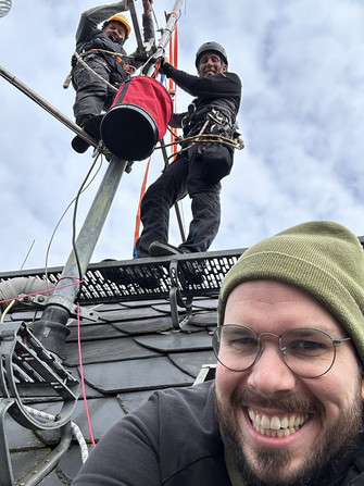 Der Dachdecker, der nach dem Einbau der Brandschutzmauer das Dach dort neu decken musste, konnte überzeugt werden, uns einige Laufbretter mit zu montieren, so dass Arbeiten an der Antennenanlage in Zukunft viel einfacher machbar sein werden.
