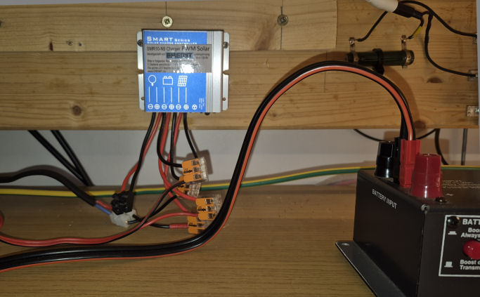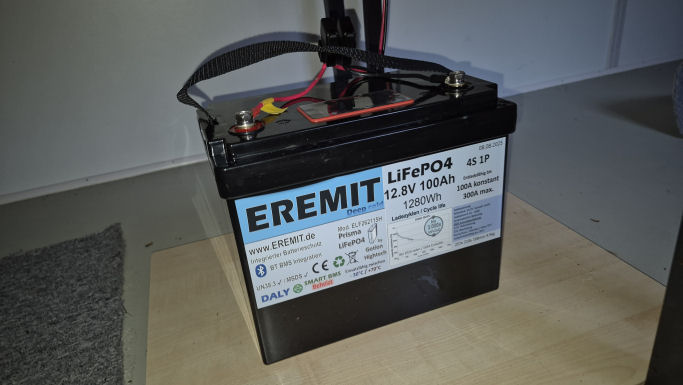 Am 09.11.2025 wurde der neue LiFePo-Akku an der Clubstation DL0PW eingebaut und angeschlossen. Damit das Solarpanel gut arbeiten kann, hat DJ3MB eine gründliche Reinigung vorgenommen. Da der alte Solarregler nur für Bleibatterien ausgelegt war, wurde auch der Solarregler erneuert. Es waren leichte Anpassungen der Verkabelung vorzunehmen. Aufgrund des trüben Wetters und des Ladezustandes des Akkus von 84 % konnte nicht festgestellt werden, ob die Ladung über das Solarpanel einwandfrei funktioniert. Da müssen in der Zukunft Erfahrungen gewonnen werden. Es wurde eine Funktionsprüfung mit dem IC7300 und 100 Watt durchgeführt, was keine Besonderheiten zeigte. Auch bei diesem Akku sollte die sog. Boost-Funktion des Zusatzgerätes für die Spannungstabilisierung immer eingeschaltet sein. Insofern ist die Station wie gewohnt nutzbar.