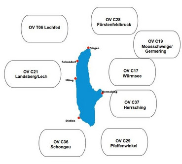 Im Osten folgt Würmsee, C17, und im Süden die Ortsverbände Herrsching, C37, Pfaffenwinkel, C29, und Schongau, C36.