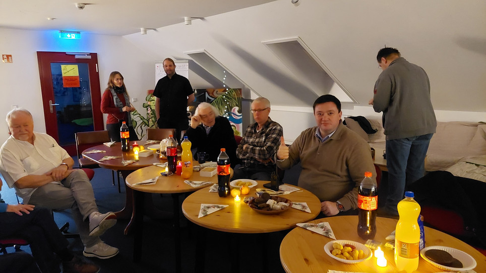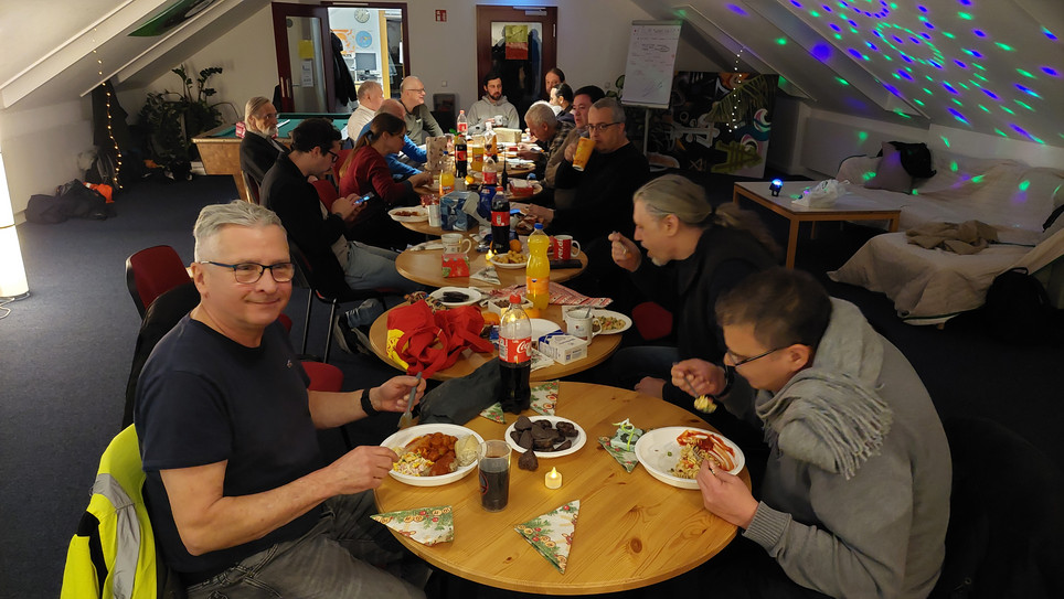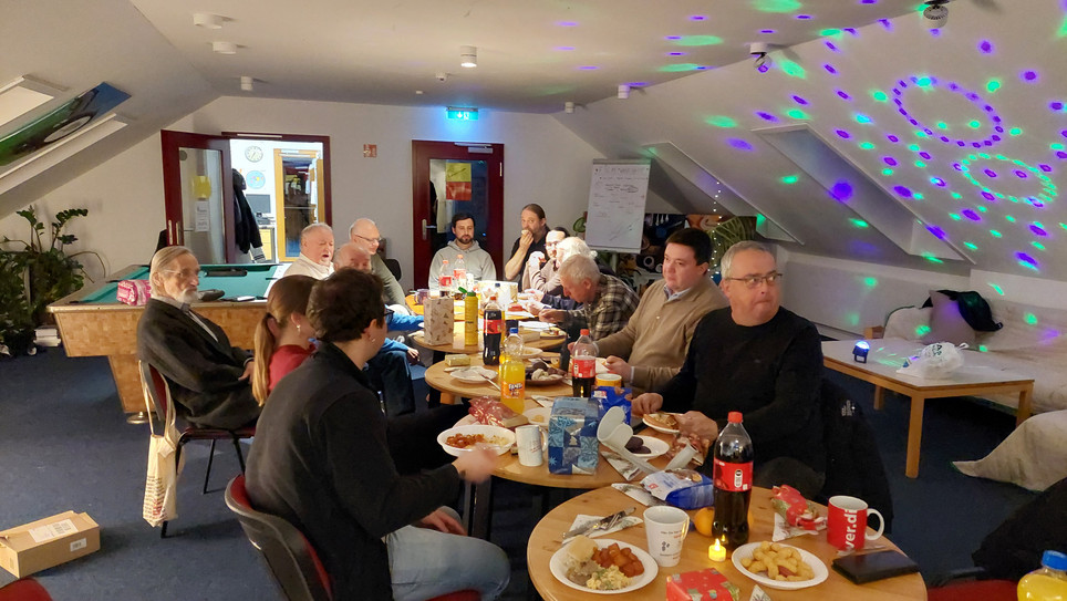 Da die Bilder leider est jetzt eingetroffen sind, hier einige Bilder von unserer Weihnachtsfeir zum erinnern. Es gab einen "Schrott-Julklapp" der etliche Überrachungen zu Tage führte.