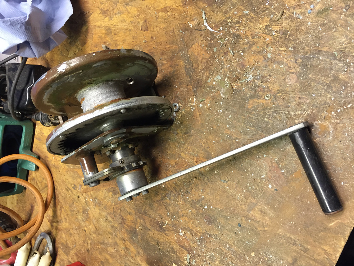Zunächst machten wir uns mit der gegebenen Technik vertraut und haben den Masten auf seine Funktionstüchtigkeit geprüft. Das Alter des Masten selbst ist nicht genau bekannt, an seinem bisherigen Ort stand er aber bereits ca. 20 Jahre. Er ließ sich hervorragend rauf und runter kurbeln. Einzig die Handkurbel hat anfangs einige Schwierigkeiten gemacht, diese haben sich allerdings nach mehreren Umdrehungen erledigt.
