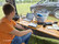 Udo, DK9XU hatte die Wiese beim Eigentümer reserviert und brachte zum Samstag seinen Wohnwagen nebst Stromerzeuger und seinen HF-TRX Selbstbau - DOMINO mit. -