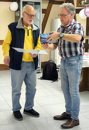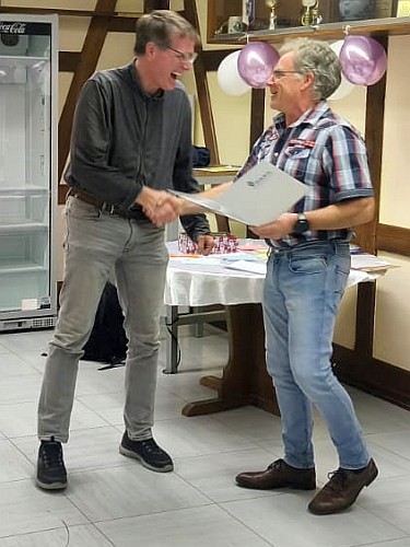 Im Rahmen des OV-Abends am 02.Juni 2023 konnte unser Vorsitzender Olaf Heins, DL5FH, unser langjähriges Mitglied Ernst Morawitz, DO1EMZ, aus Friedrichsdorf für 25-jährige Mitgliedschaft im Deutschen Amateur Radio Club ehren. Herzlichen Glückwunsch Ernst!