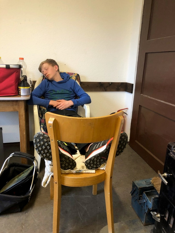 Der Herd hatte langsam den Raum etwas erwärmt, jedoch war die Arbeitsplatte, wo das Funkequipment stand, noch komplett kalt. Dieses hatte zur Folge, dass unsere Oberschenkel, die unter der Platte waren, gut gekühlt wurden. Sogar die Schuhe kapitulierten irgendwann und ließen die Kälte des Fußboden durch. Eine Styroporplatte zwischen Schuhe und Fußboden wird beim nächsten mal besorgt!