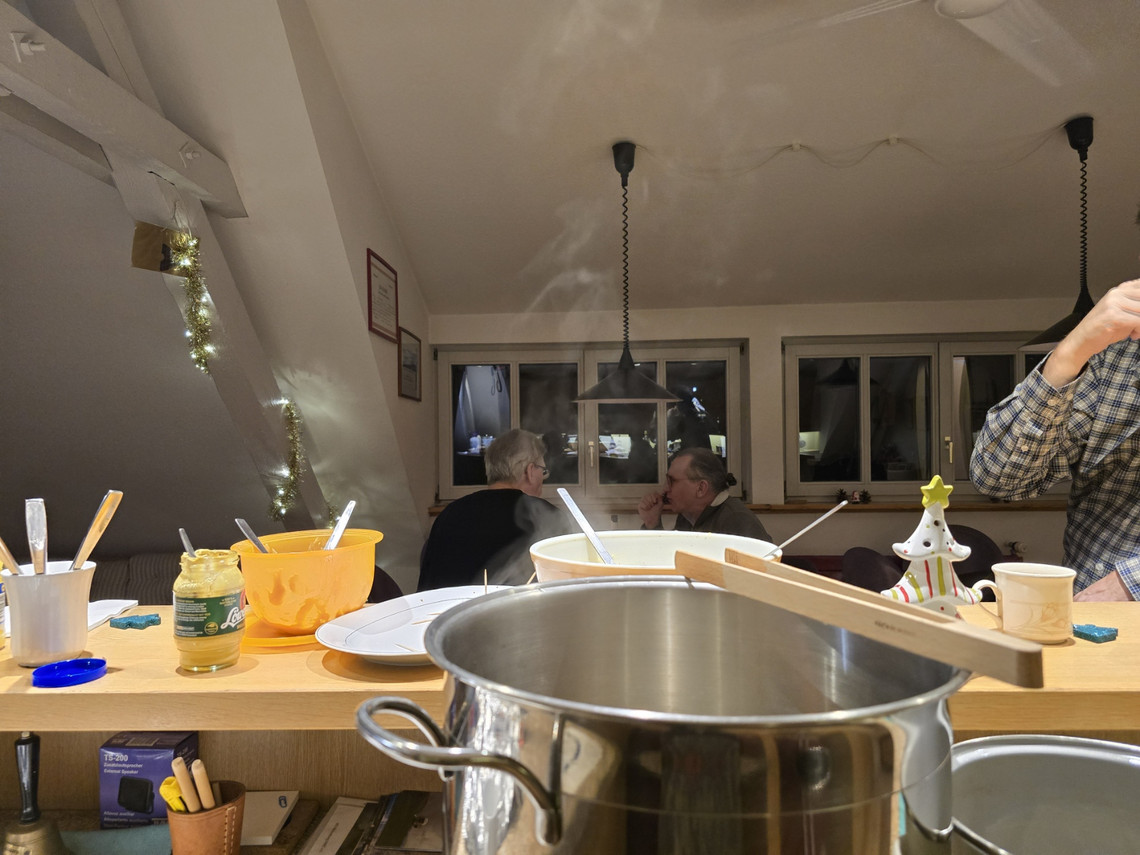Bei Plätzchen, Spekulatius, Stollen, Nussecken, Früchtebrot und Co sowie Würstchen und diversen Salaten hielten wir es viele Stunden aus.
