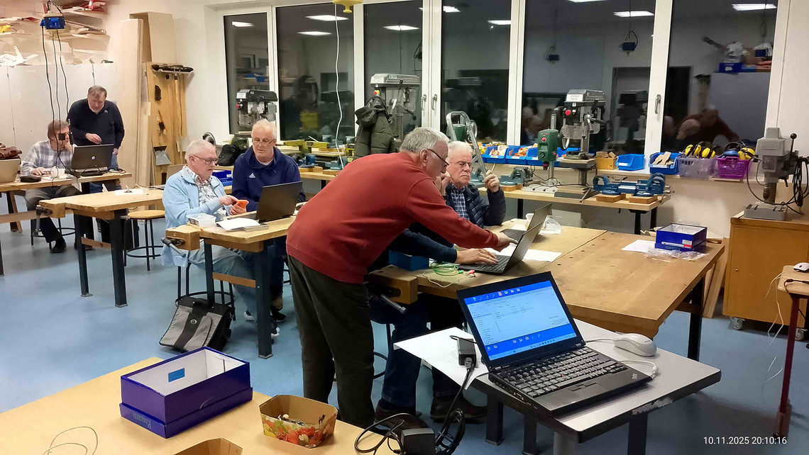 Am 10.11.25 startete in Workshop das Projekt „Experimentieren mit dem ESP32“ unter der Anleitung von Enno Klatt. Zunächst ging es darum, die Arduino IDE mittels Batchdateien so zu konfigurieren, dass die Ablageorte für die Sketches, Bibliotheken etc. einheitlich an einem Ort wiederzufinden sind. So ein Ansinnen ist bei 12 Teilnehmern mit unterschiedlichen Rechnern durchaus nicht einfach, aber durch Ennos Unterstützung waren zum Schluss alle Rechner bereit für das Experimentier-Projekt.
