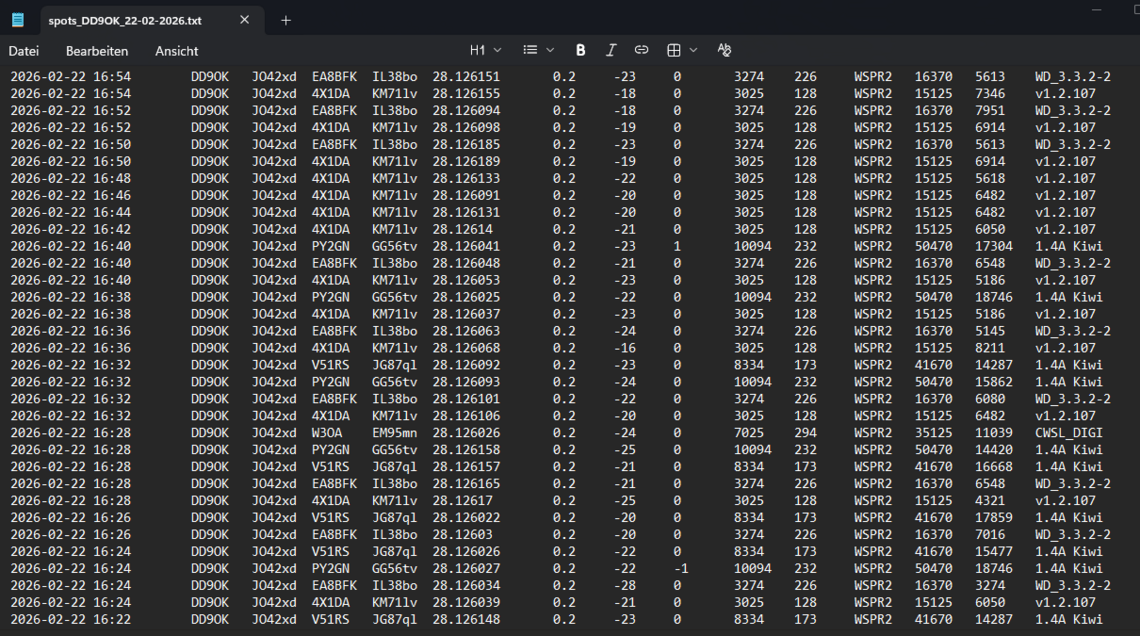 DL6OAA stellte mit Unterstützung von DD9OK vor allem die Darstellungs- und Auswertemöglichkeiten der WSPR-Daten vor. Das Skript kann HIER herunter geladen werden.