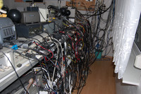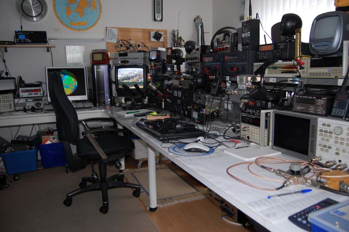 über einen Besuch bei Henri. Er ist mit mit Meßgeräten hervorragend ausgestattet, ist empfangsmäßig QRV von 10kHz bis ... und betreibt einen Dipol mit symmetrischer Einspeisung und einem Hamware-Koppler. Das hat mich besonders interessiert, weil wir ja unsere ähnlichen Antenne noch verbessern wollen. Zunächst ein paar Bilder von seinem beeindruckenden Meßplatz: