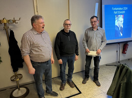 Eine weitere Ehrung kam etwas überraschend für Andrea Reinecke, DN9AR. Der Vorstand überreichte ein kleines Präsent. Hintergrund war, daß Andrea in sechs Wochen vom "Fußgänger" zum Funkamateur gebraucht hat und zum Zeitpunkt der Jahreshauptversammlung auch schon bereits ihre Amateurfunkgenehmigung der Klasse "E" bestanden hatte. Das neue Rufzeichen war noch nicht zugeteilt. Seit 04.03.2025 hat Andrea das Rufzeichen DA6AR.
