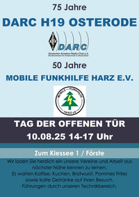 75-jähriges Jubiläum DARC Ortsverband Osterode H19 und 50-jähriges Jubiläum der Mobilen Funkhilfe Harz e.V. am 09.08. und 10.08.2025
