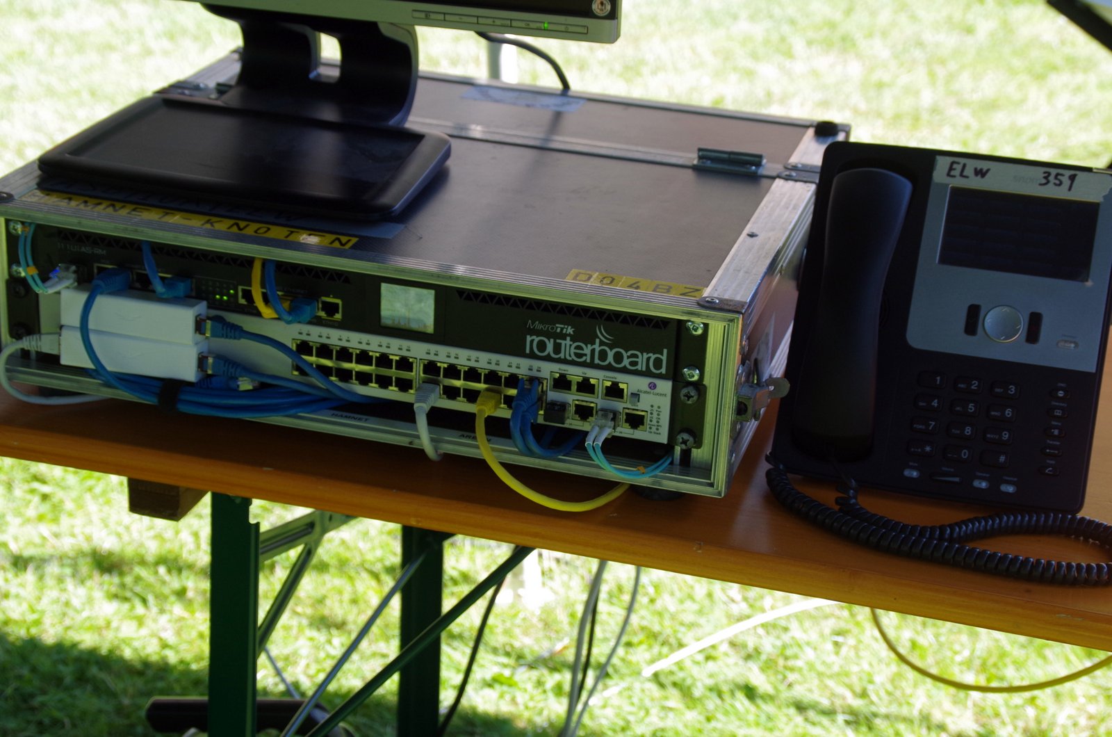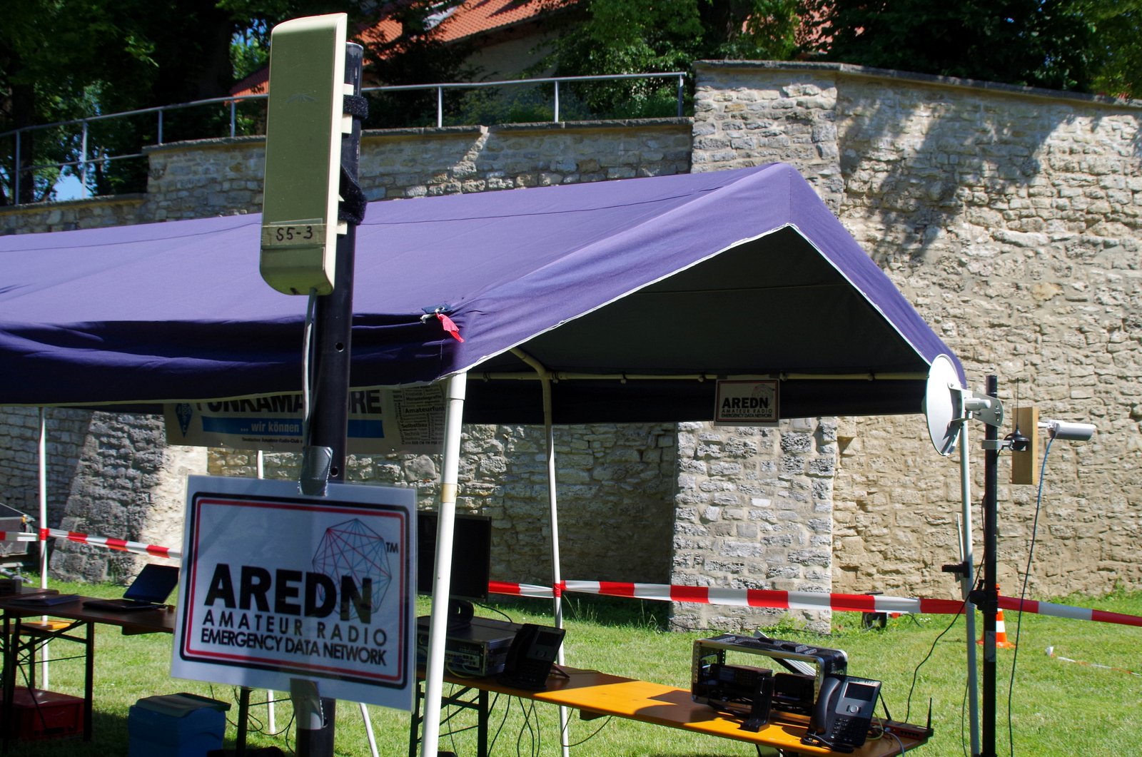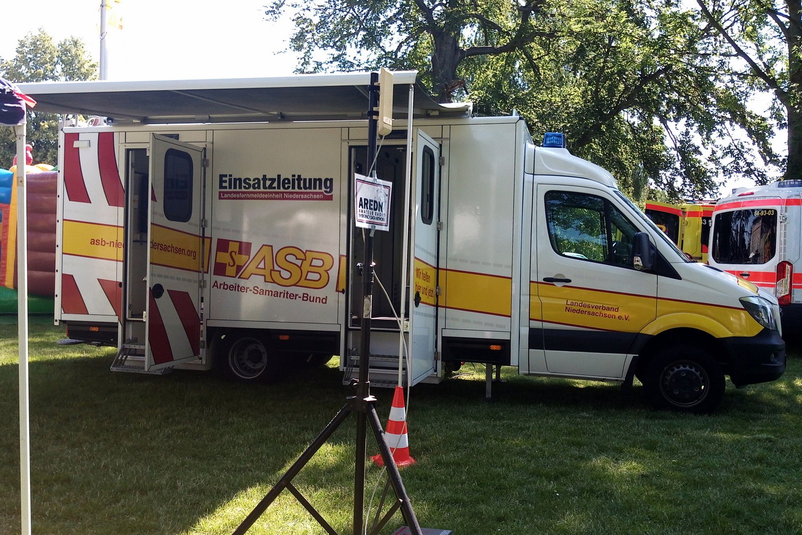 Neben Sprechfunk über Kurzwelle, einem Analog-FM-Relais im Wohnmobil, weitere Funkfahrzeuge und den Empfang des Satelliten QO-100, wurde vor allem das Einsatzstellennetzwerk AREDN präsentiert. Dabei handelt es sich um ein Mesh-Funknetz im 5GHz-Bereich für die schnelle Bereitstellung eines IP-Netzwerks. Diese Technik wird beim ASB Hannover bereits bei Großveranstaltungen erfolgreich eingesetzt. Hierbei werden mehrere Unfallhilfsstellen mit der Einsatzleitung verbunden, um Patientendaten, Kamerabilder und VoIP (Telefonie) zu übertragen. Als Hardware kommen aus dem HAMNET-Bereich bekannte Geräte zum Einsatz. Die AREDN-Firmware ist dabei speziell für den Einsatzbereich eines lokalen selbstorganisierenden ad-hoc-Netzwerkes ausgelegt. OM Holger DO4BZ ist als Mitglied der SEG Iuk (Schnelleinsatzgruppe Information und Kommunikation) des ASB Hannover die treibende Kraft hinter dem Einsatz der AREDN-Technologie.