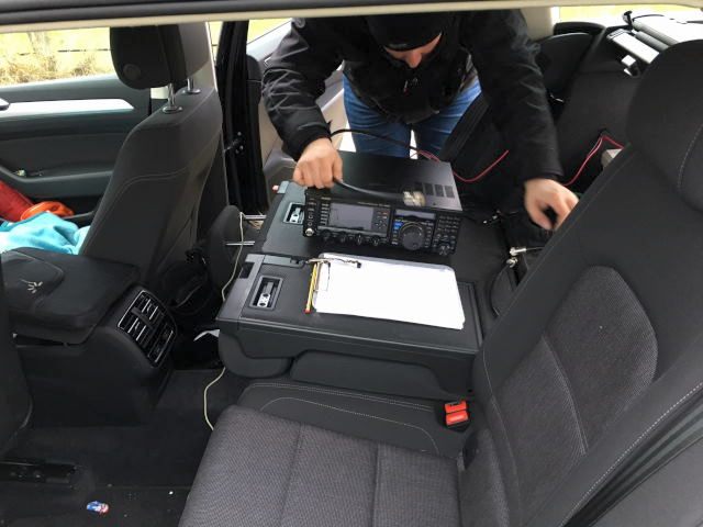 Versorgt durch eine Autobatterie konnte der Contestbetrieb im geschützten Auto von der Rückbank aus beginnen.