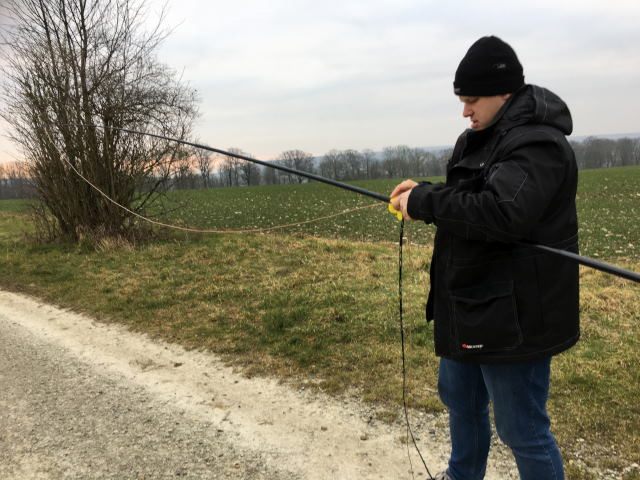 Es kam eine J-Antenne an einem 10m GFK-Mast zum Einsatz. Der Transceiver war Thorbens neue FT DX 3000, welcher extra in einem modifizierten Kamerakoffer transportiert wurde.