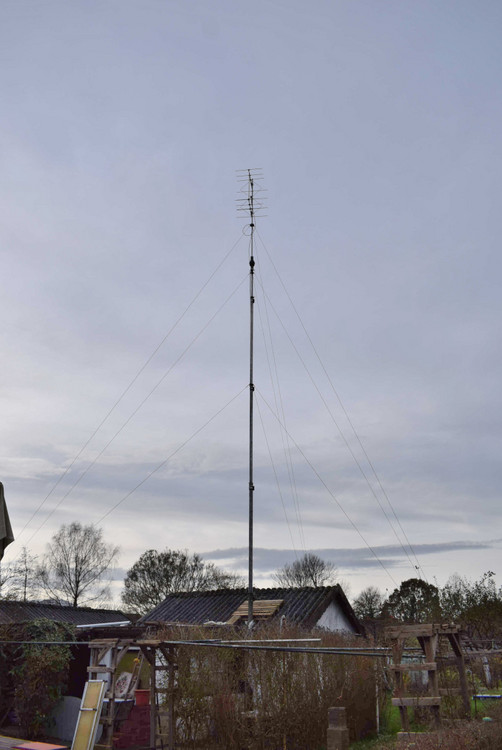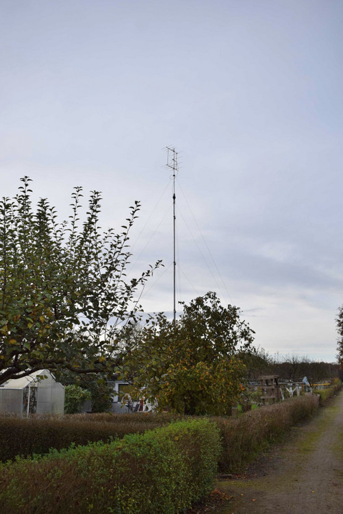 In diesem Jahr fand der Marconi Wettbewerb am 04./05. Nov. statt. Im Hinblick auf das Wetter hatten wir Glück, denn es war überwiegend trocken und bewölkt und die Temperaturen waren mit 13° tagsüber sehr verträglich.Der Aufbau der Station im Kleingarten von Yuri, DF1MM, erfolgte inzwischen mit Routine. Als TRX kam diesmal ein FT100D zum Einsatz, da dafür eine CatSteuerung für CW vorhanden war, die problemlos zu installieren war. Die Antenne war die bekannte Doppelquad-Yagi, die mit dem Kurbelmasten auf ca. 18 m Höhe gebracht wurde. Als Wichtigkeitsverstärker kam eine Transistor-PA zum Einsatz.