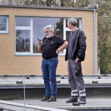 Gestern (12.07.25) fand im OV-Heim bei sonnigem Wetter der erste Bau- und Renovierungstag statt. Während Markus, DL2MKA, und Christian, DC1CP, die Renovierung des Treppenhauses vorbereiteten, montierten Patrick, DC1PA, Christian, DK5CH, und Ulli, DL4WAT einen neuen, mehrbändigen Langdraht hinter einem 1:49 Balun und eine neue Sat-Schüssel. Während sich die Langdrahtantenne reibungslos installieren ließ, machte uns die Schüssel ein wenig das Leben schwer. Mit der Ausrichtung der Schüssel müssen wir uns zu einem anderen Zeitpunkt nochmal beschäftigen.
