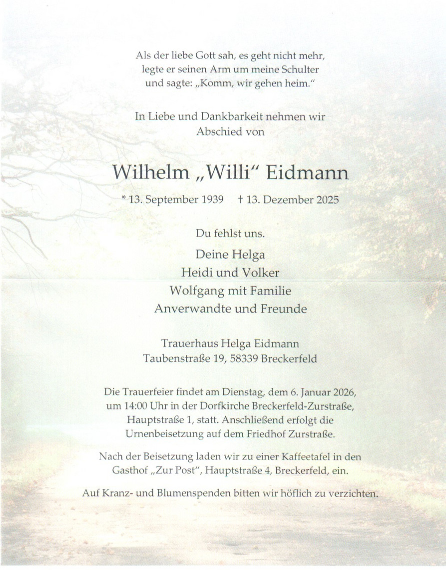 Wir werden Willi ein ehrendes Andenken bewahren.