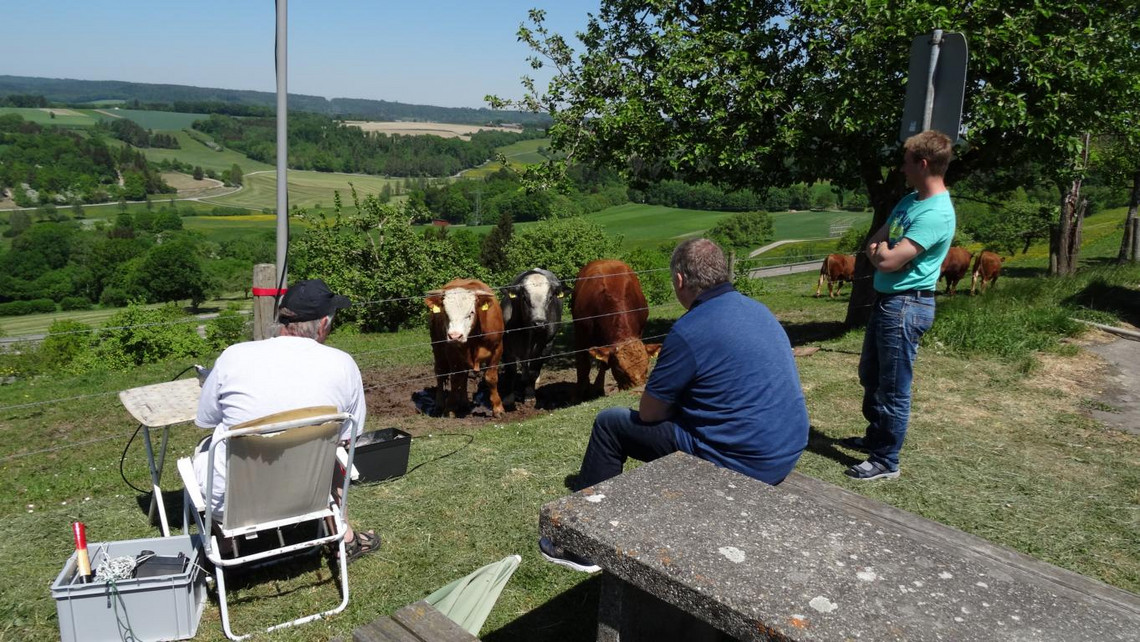 Joachim baute seinen Fuchsjagd-Sender auf und demonstrierte uns wie man mit einem Peilempfänger den versteckten Ort lokalisieren kann.