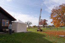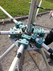 Noch rechtzeiting konnte Gerhard den zerlegten Daiwa Rotor reparieren. Leider sind beim Reparaturversuch im letzten Jahr auf dem Buchhorn zwei Kugeln und eine M8 Schraube in der Wiese verloren gegangen. Für unsere Zwecke geht es auch mit zwei fehlenden Kugeln. Helmut hat uns kurzfristig noch einen Adapter für das Drehrohr gefertigt und somit konnte es am Samstag um 10h mit dem Aufbau losgehen.