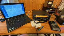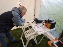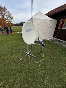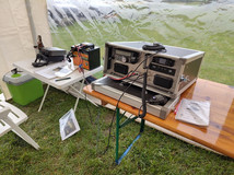 Im Parallelprogramm hat Gerhard im OV Pavillon unsere OV QO100 Station aufgebaut und betrieben. Es gelangen QSOs über den Satellit von Brasilien bis Indien. Auf 2m kam unser Notfunk-Koffer zum Einsatz.