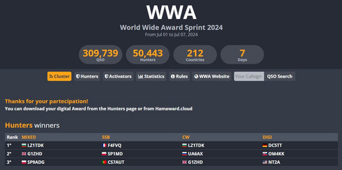 (zum Vergleich 2024: 733 QSO; Score = 172789)