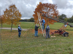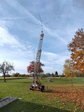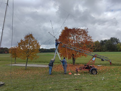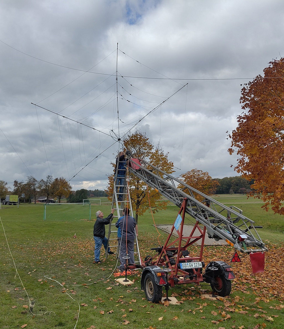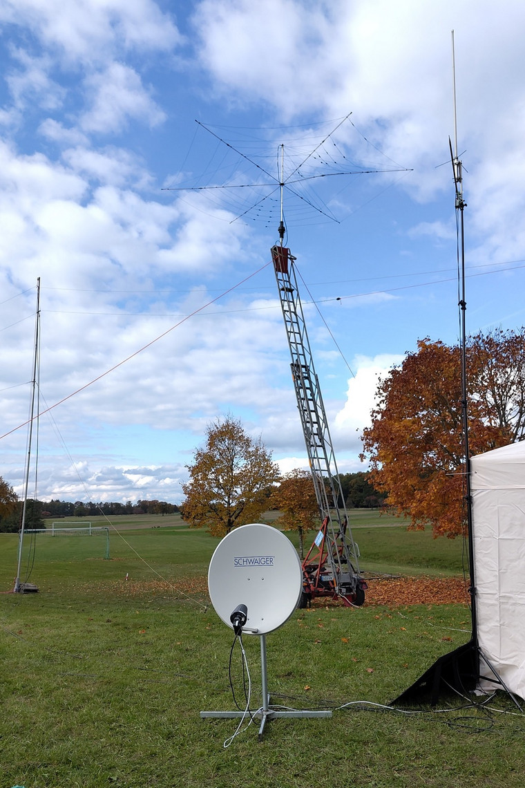Unseren Foldingantennas Hexbeam konnten wir diesmal dank der von Gerd DO9SGW zur Verfügung gestellten mobilen Feuerwehrleiter auf eine bessere Höhe als im letzten Jahr bringen. Wir hatten Die Halteklammern vergessen und so ist er beim Auf und Abbau zusammengeklappt. Er hat aber trotzdem gut funktioniert. Für den nächsten Einsatz müssen wir ein abgebrochenes Element reparieren.