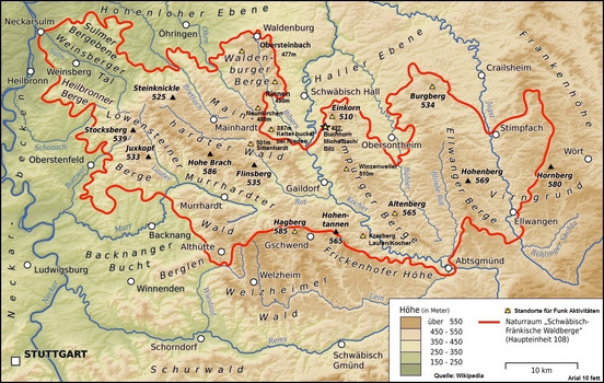 Mögliche Fieldday Orte (Karte Schwäbisch-Fränkische Waldberge)