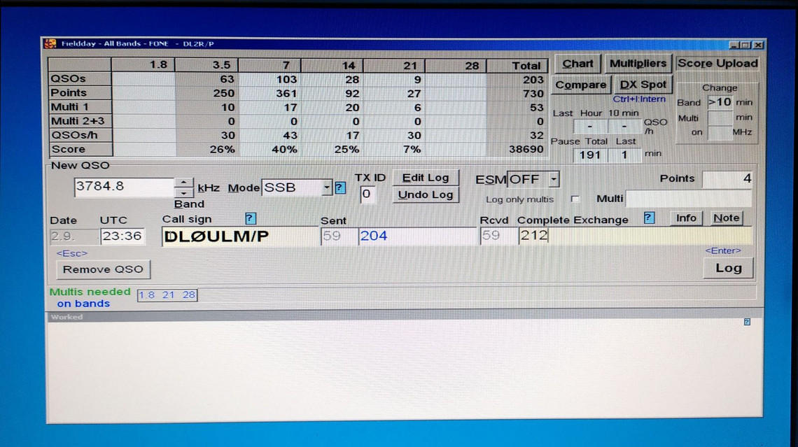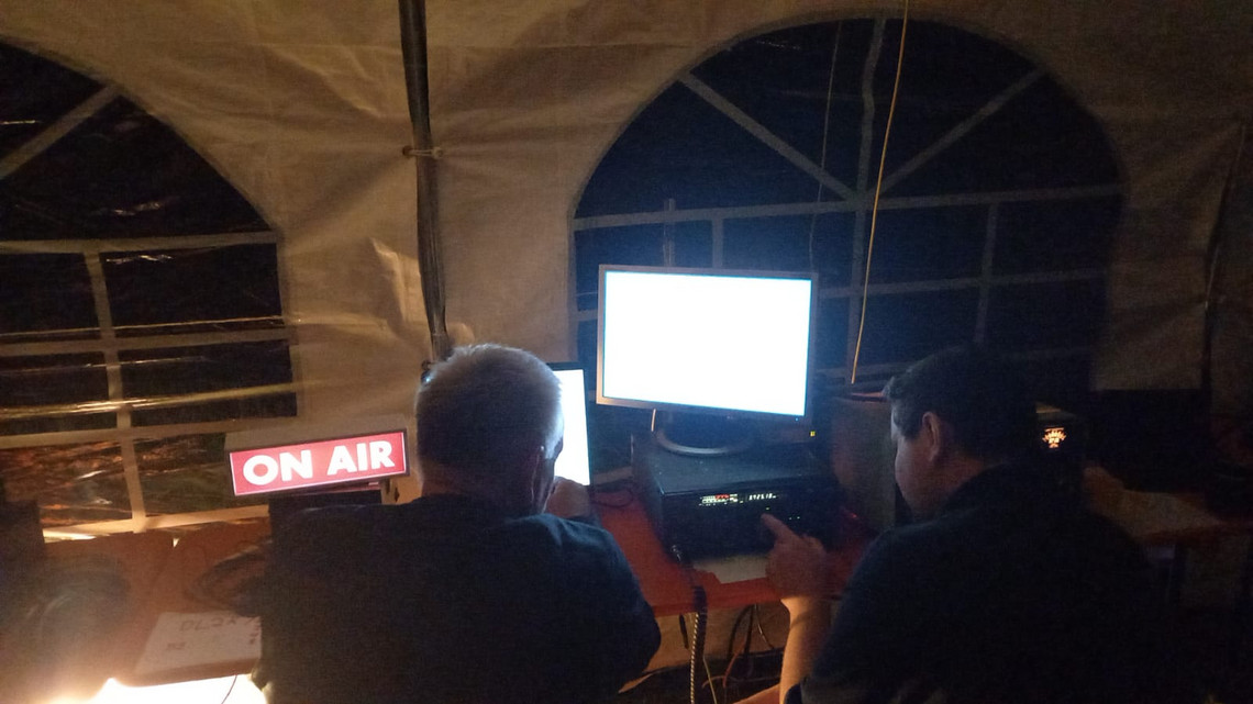 Nach dem schnellen Aufbau und der Inbetriebnahme konnte er die ersten Kontakte tätigen. Insgesamt wurden ca 50 QSOs in 6h geführt. Auf UKW war die weiteste Verbindung nach Österreich über das Zugspitz Relais DB0ZU, und auf Kurzwelle ging es bis nach Israel.