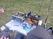 Peters Portabel-Set-up bestand aus seinem IC-706, einem 2 x 15m Dipol, symmetrisch gespeist an einem MFJ Autotuner. Neben QSOs in SSB stand auch ein Test verschidener Koaxkabel zwischen Trx und Tuner an.