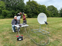 Nachdem wir im Frühjahr beschlossen hatten eine portable QO100 Station anzuschaffen, sind alle Gerätschaften angekommen. Wir hatten diese bei Achim erstmalig zusammengebaut und erfolgreich in Betrieb genommen. So konnten wir die Station auf dem Fieldday den OV Mitgliedern und Besuchern vorstellen. Walter und Peter haben auch gleich ihre ersten SSB QSOs über Satellit führen können. Mittels des DATV Equipments von Helmut war das Bild der Wideband Bake zu sehen.