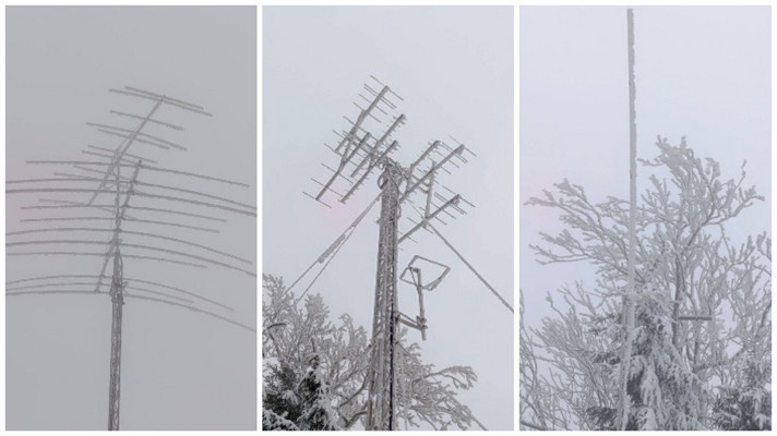 Hoffentlich kommt kein erneuter Sturm, bevor wenigstens etwas abgetaut ist. Da sind Zentner von Eis an jeder Antenne...