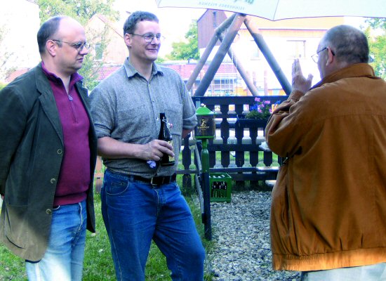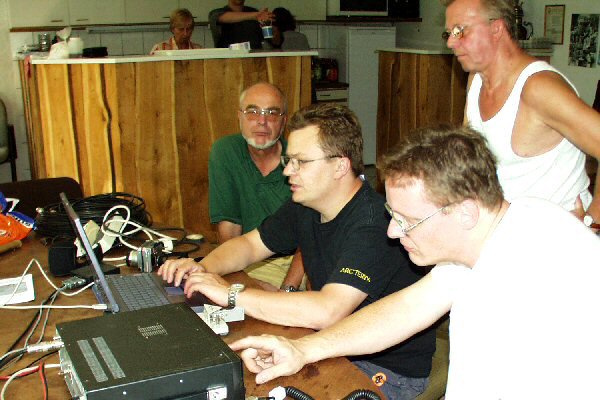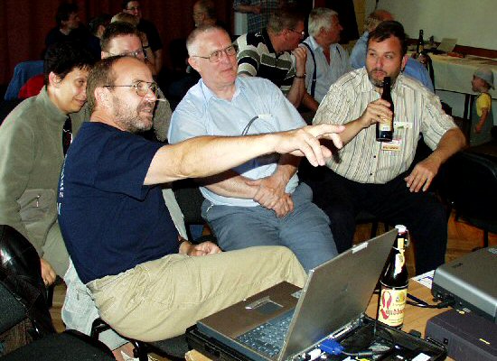 - Die folgende Pause wurde vor allem von den 'alten Hasen' zu reger Diskussion über aufgeweckte Erinnerungen aus weit zurückliegender Zeit, aber auch für Nachschub zur Befeuchtung der Zunge und Beruhigung des Magens genutzt. Danach folgte ein Vortrag von Reiner, DL8LRZ, der mit Bildmaterial den ersten Vortrag erweiterte und vor allem die Aktivitäten des Ortsverbandes im neuen Jahrtausend anhand von Bildern beleuchtete.