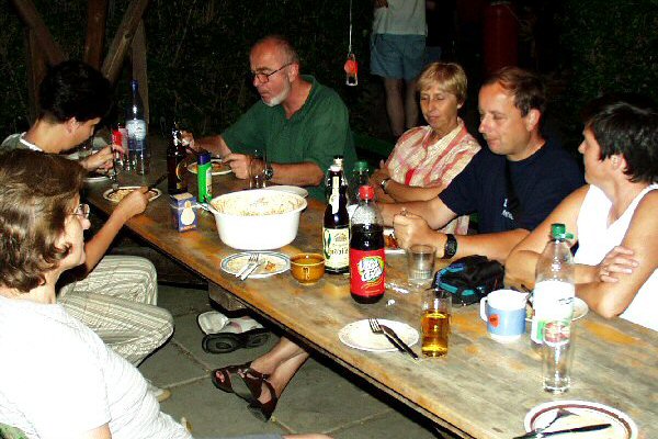 Es wurde viel geplaudert, Hunger machte sich bemerkbar, der Grill begann zu glühen. Keiner verhungerte, alles war reichlich vorhanden.
