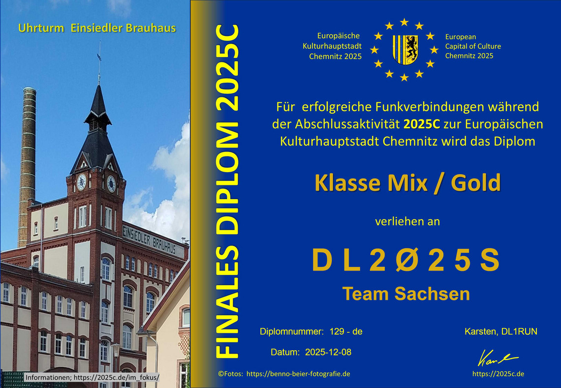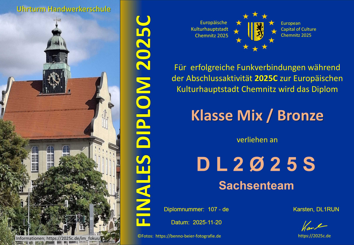 Ähnlich der 100FK-Aktion waren bis Ende März wieder eine Reihe von Diplomen mit historischen Motiven zu erarbeiten. Die QSL wird als eQSL und/oder als dQSL zum Herunterladen angeboten.