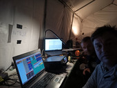 Im MINT-Container wurde eine einfache Conteststation mit Yaesu FT-DX 10 Transceiver und Notebook aufgebaut. Der Transceiver wurde auf die Frequenz eines 80m Fuchssenders eingestellt der die Kennung MOE gab. Dieser Sender wurde hinter dem MINT-Container „versteckt“ und mit einem handelsüblichen Bleigel-Akku betrieben.