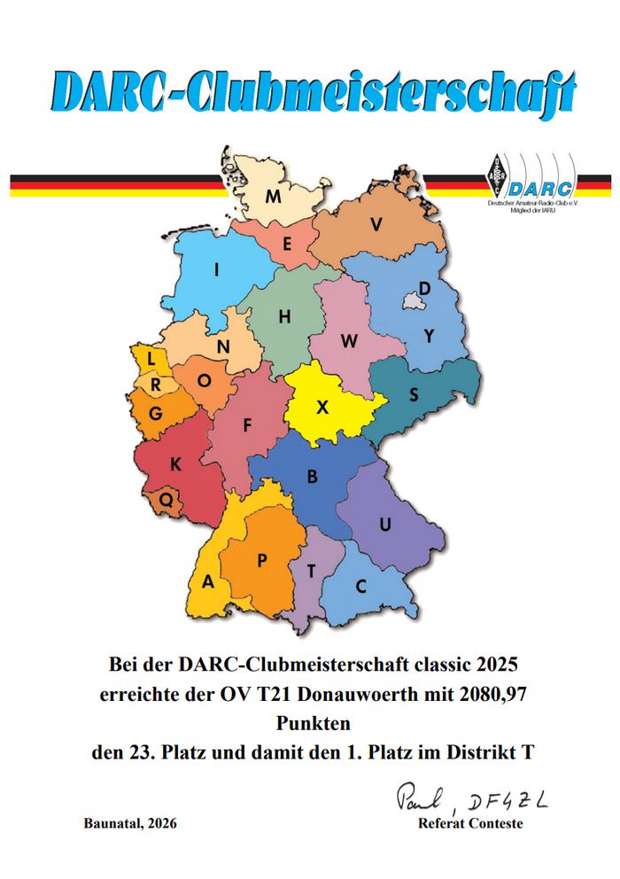 Wir belegen in der Clubmeisterschaft des DARC auf Distriktebene den 1.Platz im Classic-Teil von 17 teilnehmenden