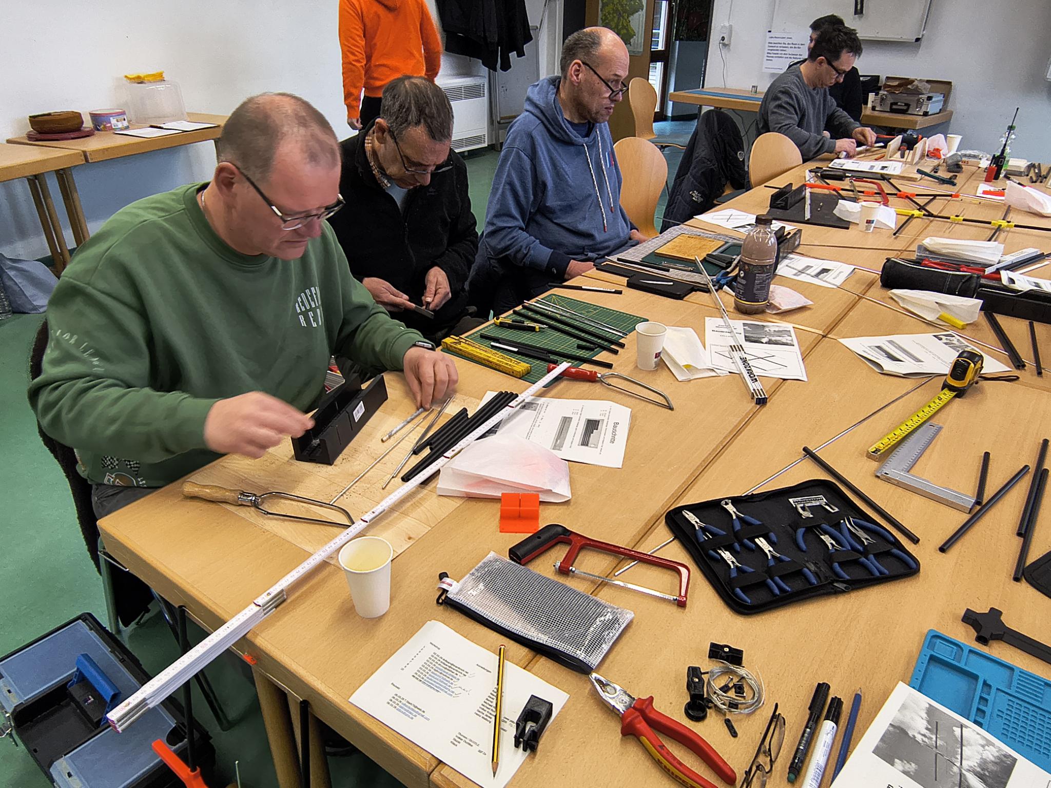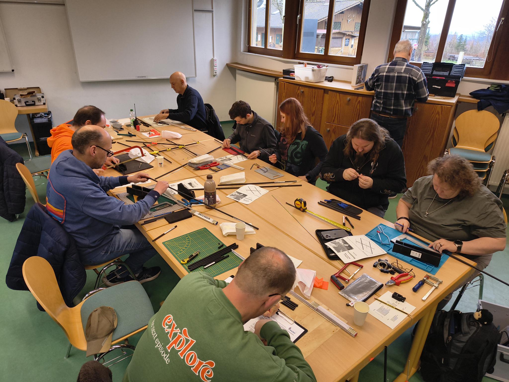DO9PAM, Katharina und ich haben am Samstag am Antennenbau-Workshop von Q21 teilgenommen, der von Jan DG1JAN organisiert wurde. Treffpunkt war der Schulungsraum der Wildpark Alm. Kurz nach neun Uhr morgens saßen dort etwa zehn Teilnehmerinnen und Teilnehmer um einen großen Tisch und begannen mit dem Aufbau der Antennen.
